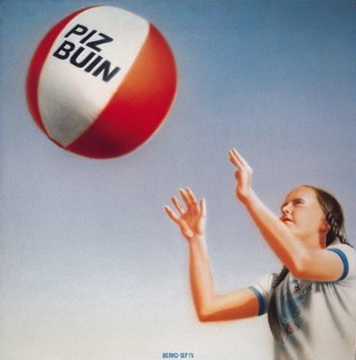 Berko: Najdražji bicikl, april 1975, akril in zračni čopič na platnu, 200x200 cm, Galerija suvremene umetnosti Zagreb